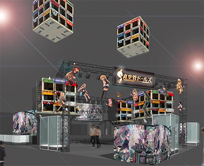 2016年 JohnHathway原作のアプリゲーム「真空管ドールズ」リリース記念イベントブース(ニコニコ超会議内)ドール型パソコン、キャラクター画、ファッションショー、街を再現したブース等